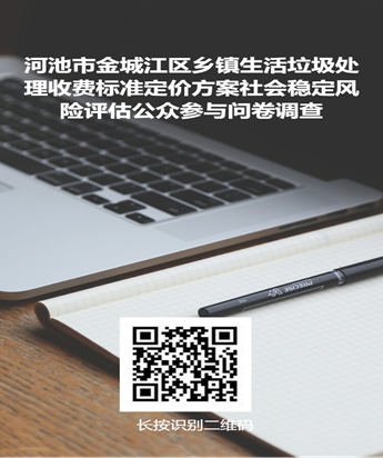 受河池市金城江區(qū)住房和城鄉(xiāng)建設(shè)局的委托,云之龍集團有限公司對《河池市金城江區(qū)鄉(xiāng)鎮(zhèn)生活垃圾處理收費標(biāo)準(zhǔn)定價方案》進行社會穩(wěn)定性評估工作,為切實履行公眾參與,廣泛征求公眾意見,現(xiàn)將有關(guān)信息進行公示如下:
