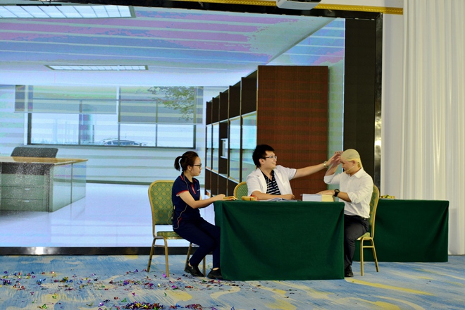 劇目《中國好女婿》圍繞“規(guī)范專業(yè)”的集團核心價值觀, 通過一個“招女婿”的招標項目,幽默風趣地展現(xiàn)出云之龍人嚴格執(zhí)行行業(yè)標準,嚴把內(nèi)控關的行事風格。