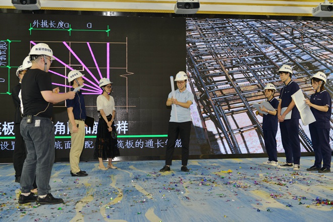 劇目《看全咨》,把現(xiàn)場觀眾帶回了工地施工現(xiàn)場。面對困難,他們從未退縮,堅持把事情做成、把事情做好,堅守“結(jié)果導向”的核心價值觀,運用扎實的專業(yè)知識解決工程難題。在劇里,他們獲得業(yè)主好評,在現(xiàn)實工作中,他們?nèi)耘f獲得業(yè)主夸贊。