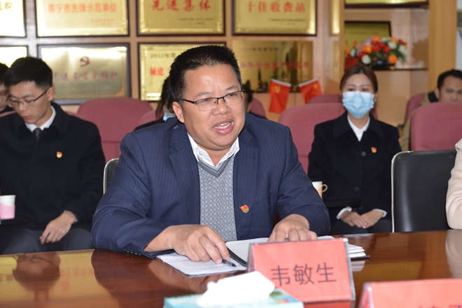 會上,韋敏生書記介紹了南寧路橋公司黨總支部的黨員情況及公司業(yè)務發(fā)展。他說,總支部目前有黨員69人,下設黨支部3個,分別為南寧城市路橋投資管理有限責任公司機關(guān)黨支部、南寧中州投資有限公司黨支部、廣西路邦石化有限公司黨支部。他表示,雙方要以“雙強六好”為目標開展黨組織共建活動,充分發(fā)揮黨組織的自身優(yōu)勢,拓展和完善黨組織功能,定期交流黨建工作經(jīng)驗,共享黨建工作信息,提高黨建工作水平。