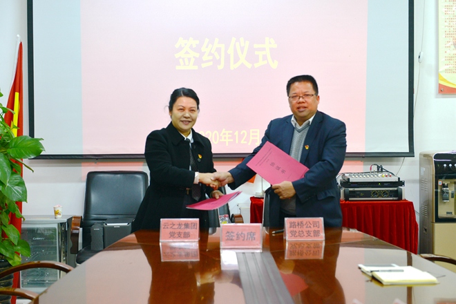 為提高黨建工作水平,向優(yōu)秀黨組織靠攏,2020年12月31日,云之龍集團黨支部與南寧路橋公司黨總支部開展黨組織共建座談會并簽訂了共建合作協(xié)議。通過此次合作,探索和構(gòu)建起雙方黨組織互聯(lián)互動、互促共進、共促發(fā)展的黨建一體化工作格局,以高質(zhì)量黨建促進各項工作穩(wěn)步發(fā)展。
