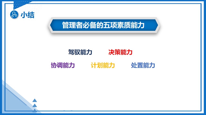 課程內(nèi)容圍繞優(yōu)秀管理者應(yīng)該具備的五大人格魅力、五項(xiàng)素質(zhì)能力、最常用技巧以及管理者應(yīng)重視的管理意識(shí)問(wèn)題等內(nèi)容展開(kāi)。課上,還為大家播放了多個(gè)視頻案例,通過(guò)生動(dòng)的視頻解讀其中管理思維。