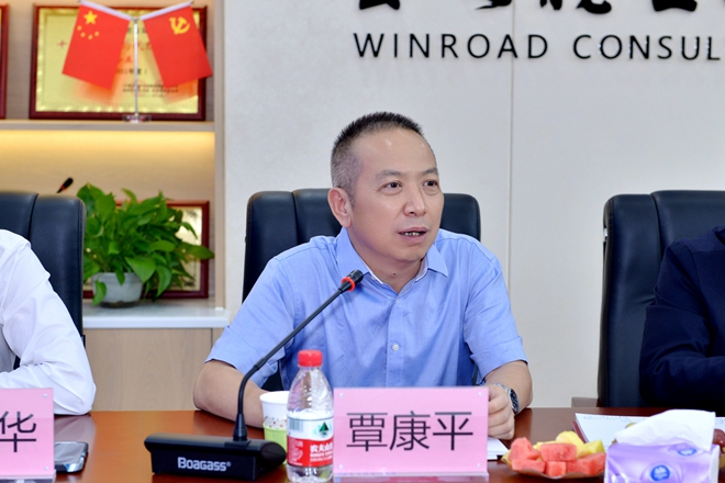 此次調(diào)研學(xué)習(xí)活動是在自治區(qū)工信行業(yè)聯(lián)合黨支部書記、廣西中小企業(yè)聯(lián)合會執(zhí)行會長張杰的牽頭下,河池市人民政府工業(yè)振興特派員、廣西丹泉酒業(yè)營銷公司副總經(jīng)理覃康平,廣西丹泉酒業(yè)集團(tuán)副總經(jīng)理王豐全等一行到云之龍參觀調(diào)研。云之龍咨詢集團(tuán)總裁王鐿霖,副總裁莫國華、韋明劍一同參與調(diào)研會議。