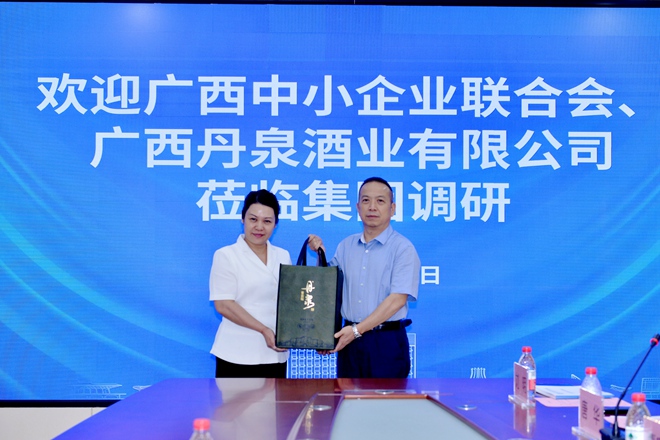 王鐿霖總裁對丹泉酒業(yè)一行的到來表示歡迎,對廣西中小企業(yè)聯(lián)合會的牽線搭橋表示感謝。她說:“丹泉酒業(yè)是廣西優(yōu)秀龍頭企業(yè)代表,在經(jīng)營管理理念、企業(yè)文化建設(shè)、黨建工作等方面十分值得我們學(xué)習(xí)。希望雙方能發(fā)揮自身的優(yōu)勢,加強(qiáng)相互間的交流與學(xué)習(xí),共同助力壯美廣西建設(shè)?!?