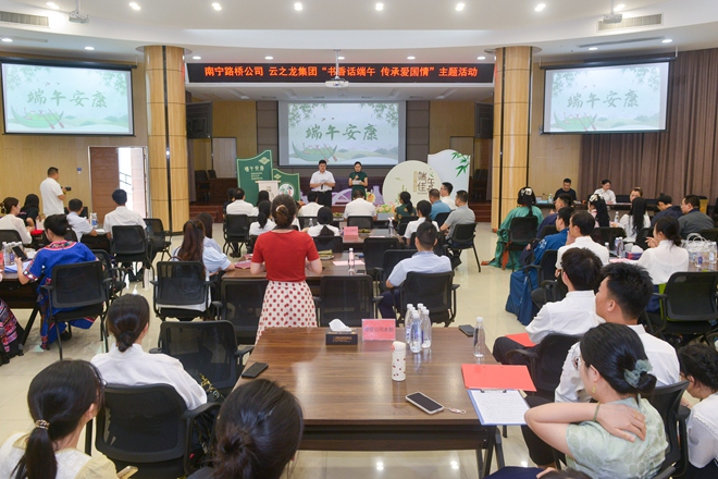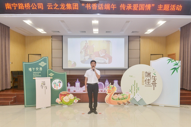 在中國(guó)傳統(tǒng)佳節(jié)端午節(jié)即將到來(lái)之際,2024年6月6日,南寧路橋公司黨總支聯(lián)合云之龍咨詢集團(tuán)黨總支開(kāi)展“書(shū)香話端午,傳承愛(ài)國(guó)情”主題活動(dòng),共同分享端午佳節(jié)故事,誦讀端午經(jīng)典詩(shī)篇,一同感受中國(guó)傳統(tǒng)文化的魅力。