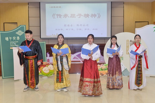 在誦讀經(jīng)典環(huán)節(jié),誦讀者們聲情并茂、滿懷熱情地朗誦了《小重山·端午》《傳承屈子精神》《端午詠屈原》《永恒的端午》等經(jīng)典詩(shī)篇。