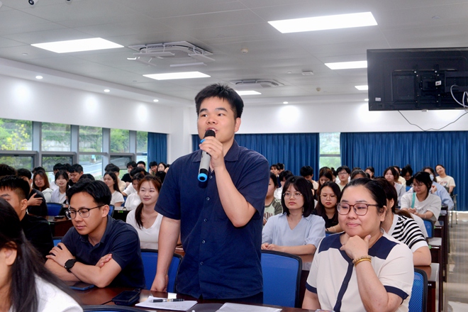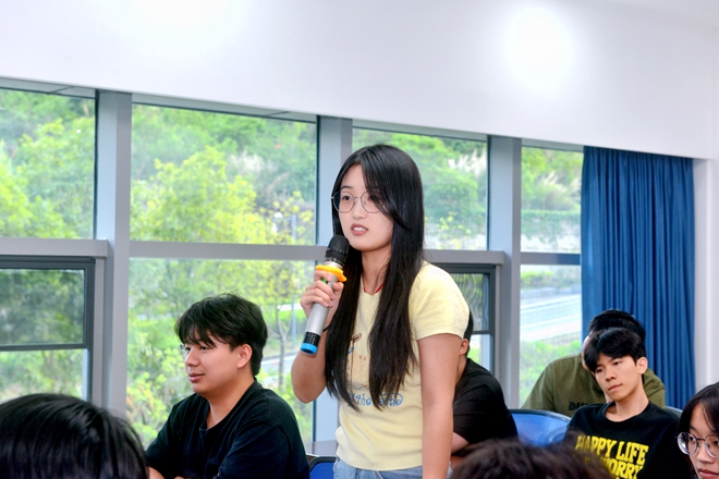 在自由交流環(huán)節(jié),學(xué)生們積極發(fā)言,對具備豐富經(jīng)驗(yàn)的胡冬梅老師提問,共同探討造價行業(yè)的未來發(fā)展方向和就業(yè)前景等。