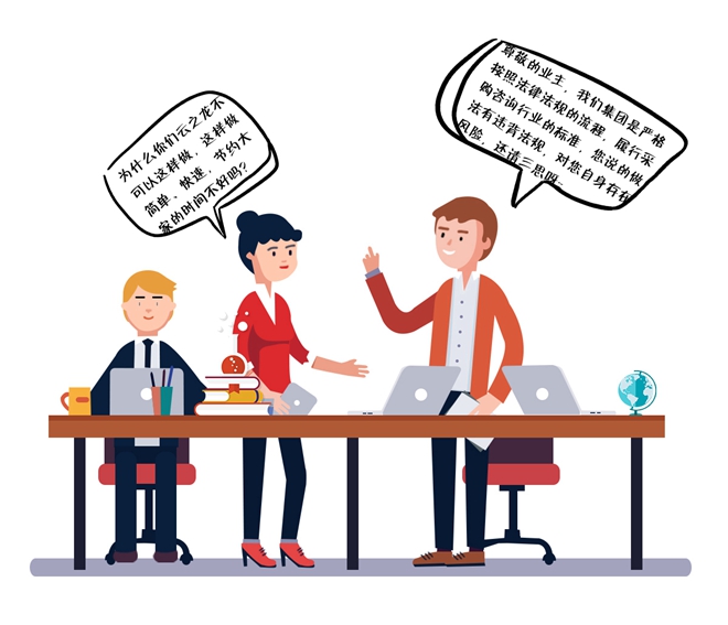云之龍項(xiàng)目團(tuán)隊(duì)的工作原則就是要規(guī)范執(zhí)行項(xiàng)目。項(xiàng)目經(jīng)理們總是想盡辦法為采購(gòu)人解讀法律條文,道出隱藏風(fēng)險(xiǎn)。有些時(shí)候遇到采購(gòu)人不太理解的情況下,他們總是不厭其煩地為其解釋,讓采購(gòu)人明白規(guī)范流程就是在保護(hù)他們。