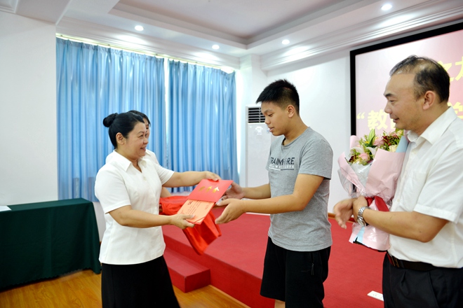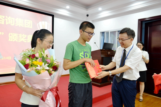 集團(tuán)領(lǐng)導(dǎo)為獲獎(jiǎng)的“龍二代”頒獎(jiǎng)