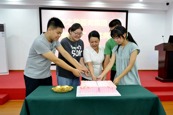 分享成功的喜悅,王總裁與孩子們一起切下蛋糕