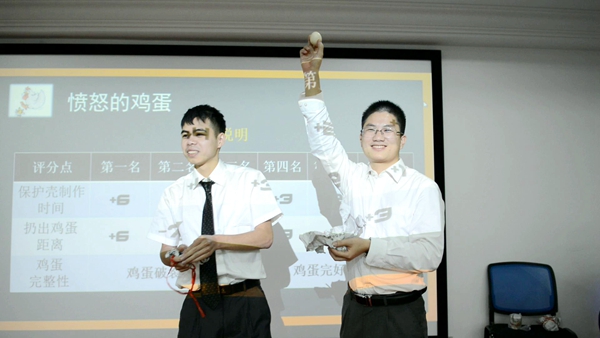 培訓(xùn)中,助教蔣銀亮還為大家策劃了“憤怒的雞蛋”和“聰明的撲克牌”兩項游戲?!皯嵟碾u蛋”手工制作游戲考驗大家在短暫幾天之內(nèi)是否真正學(xué)會了團(tuán)結(jié)協(xié)作,不落下任何一個人;“聰明的撲克牌”則展現(xiàn)了溝通和效率的聯(lián)系,越是能夠“共用大腦”、越是信息交換到位,那么賽跑的速度就會越快。這些游戲中蘊(yùn)藏的道理,讓學(xué)員們在體驗和奔跑中入腦入心。